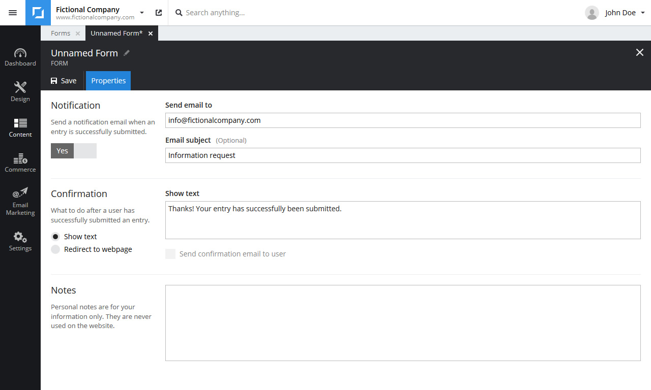 Note: A form by itself is not publicly accessible. A form must be added to a webpage to be useable by visitors.